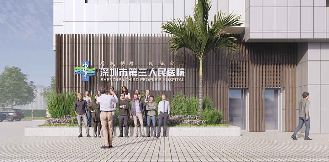 医院常年有参观及研究学者,常需要合影留念,为了,医院的传播途径得以有效,在参观者合适的动线之处,我们在这面墙上设立了拍照墙
