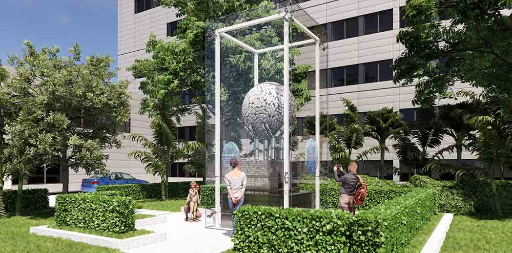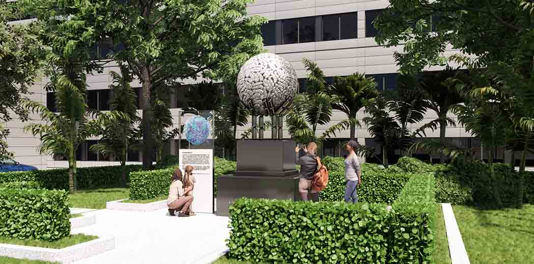 这是三院的研究学者发现的塞卡病毒雕塑标本,为纪念这一重要发现,我们进行了包装,提升了仪式感