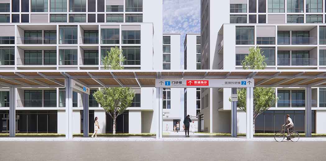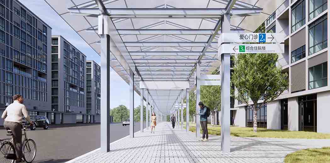 就是贯穿医院建筑的地面连廊,我们重新提出了改造方案,使之变得更加艺术性,成为院内靓丽的一道风景线