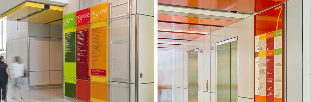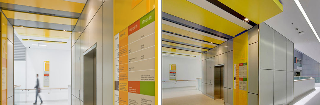 一脉讲评:悉尼皇家北岸医院,把医院标识系统分色分区分号运用到医院空间里,特别是在颜色的划分中,尊重色彩为病患带来的体验,到了极致;